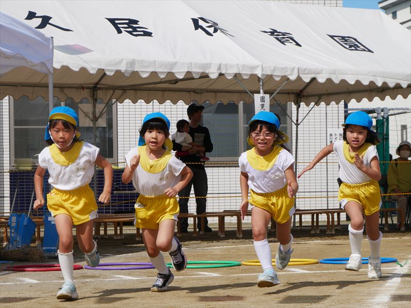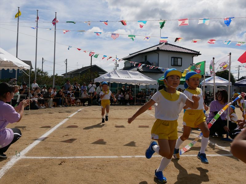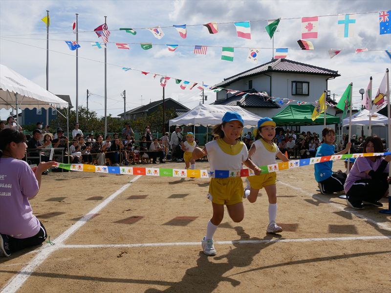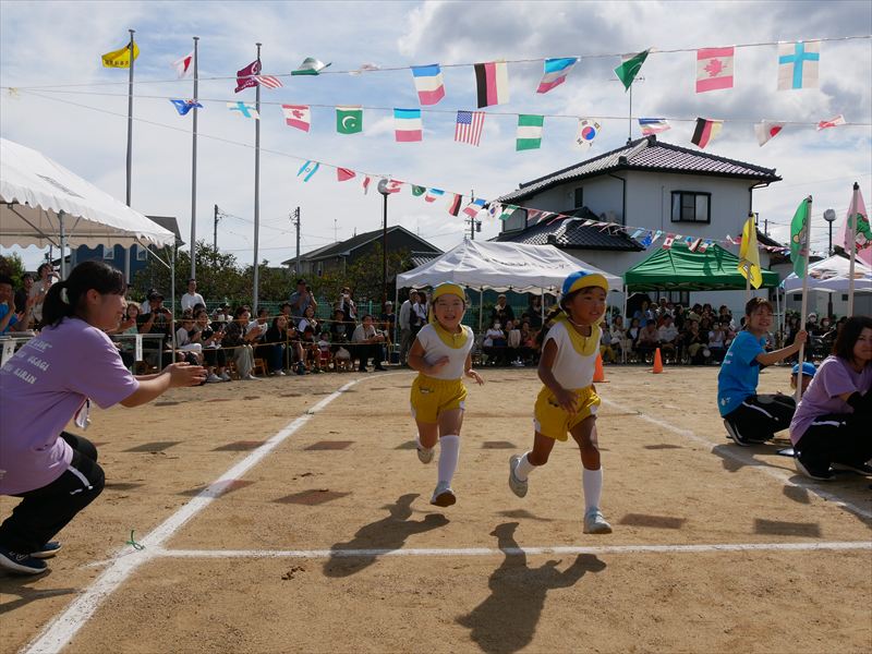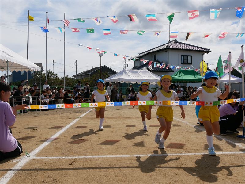 みんなの笑顔 最高!(№6 かけっこ 5歳児) 2025年10月18日 さあ、楽しみなきりん組が登場しました。今年は去年よりも長い距離です。「頑張るぞ!」とやる気満々の子ども達。ゴールを目指して一生懸命走りました。年長さんらしい頑張りでしたね。