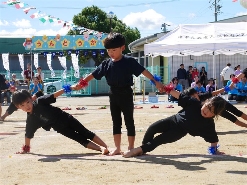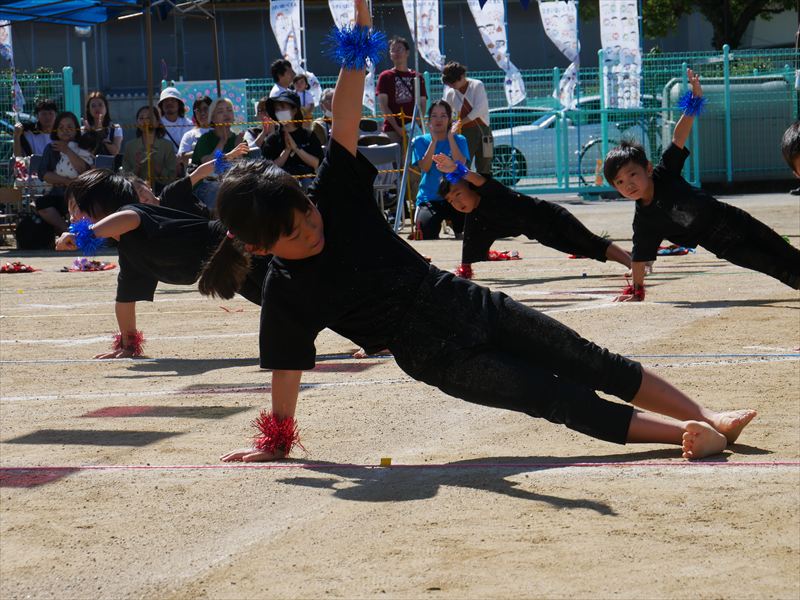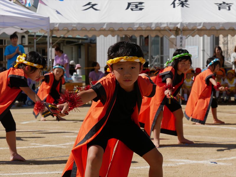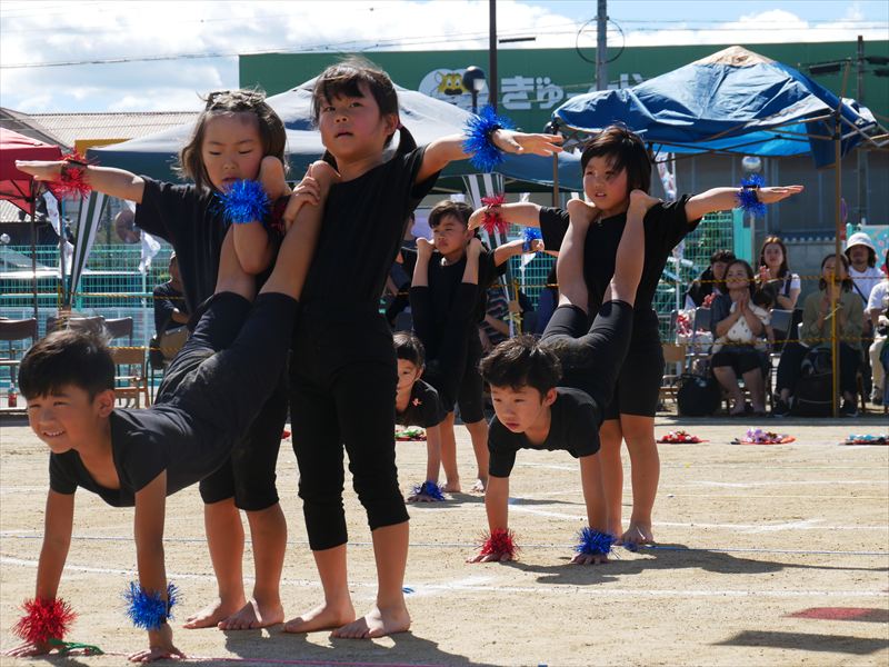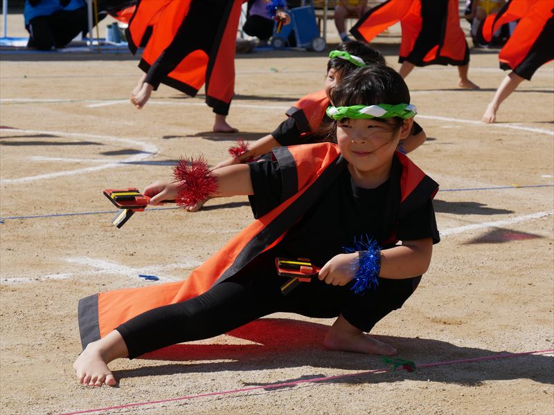 プログラム13番は、5歳児きりん組のよさこい、組体操「GOOD LOOK!!」です。