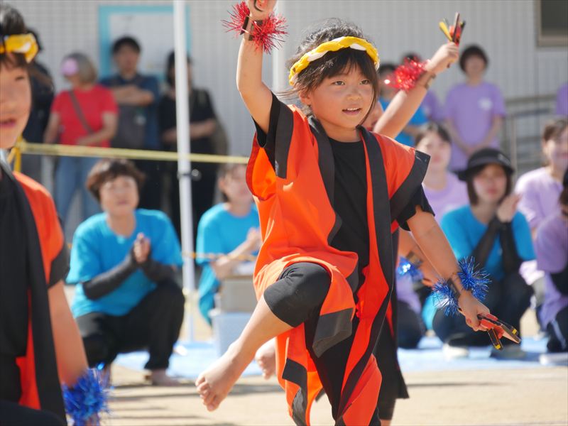 25名全員で取り組みます。みんなで手を繋いで表現する「波」、息を合わせて作り出す「ピラミッド」。よさこいでは、元気な掛け声とキレのある踊り、見所が沢山ありましたね。