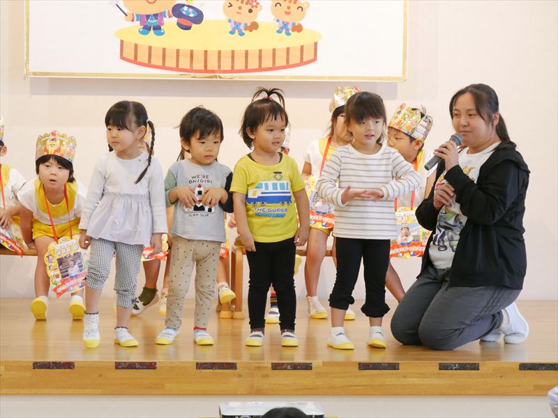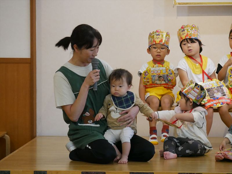 10月誕生会 2025年11月4日 「おめでとう!」「ありがとう!」の声が今日も響き渡りました。どの子も嬉しい限りですね。一つひとつ大きくなっていくその瞬間瞬間に、たくさんの人からの「おめでとう」をいっぱいいっぱい貰って、優しい人になっていこうね。