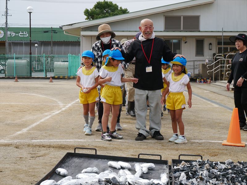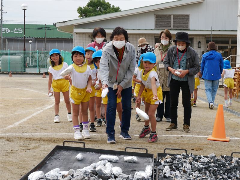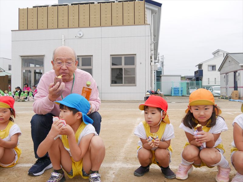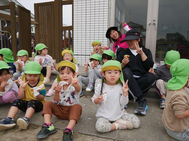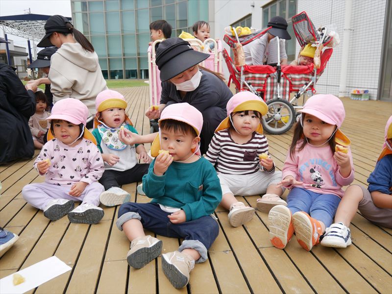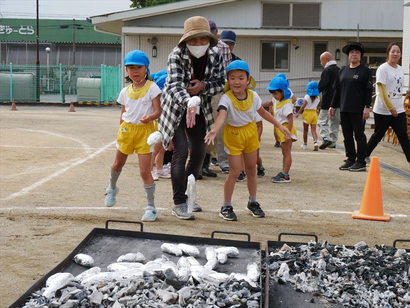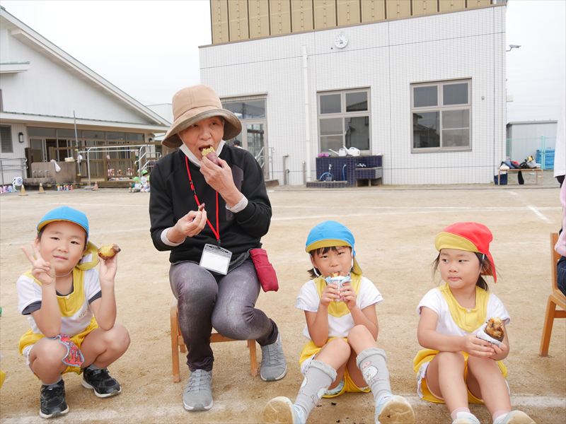 炭火でゆっくりと焼き、「甘くて美味しいね」と大好評の焼き芋になりました。みんな、焼き芋大好きです。何度もおかわりをした子もいましたよ。みんなで食べるって、本当に幸せ感いっぱいですね。