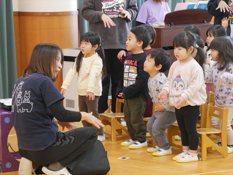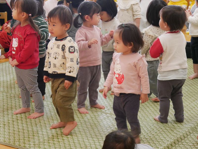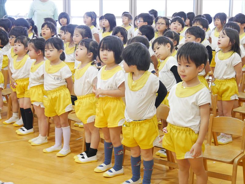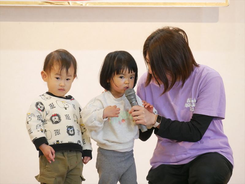 今月は、りす組のお友だちふたりでした。ちょっぴり緊張していますが、しっかりマイクを通してお返事など言ってくれました。この日の為に家では練習をしてきたお友だちも・・・